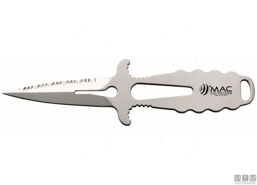 Kompaktan ronilački nož s rezačem konopa i otvaračem škopaca. Ručka od Inoxa debljine samo 4 mm što ga čini savršenim za ronjenje. Opremljen futrolom i trakama. Oštrica od Inoxa W1.4116. Nakon uporabe potrebno je oštricu isprati slatkom vodom i podmazati.