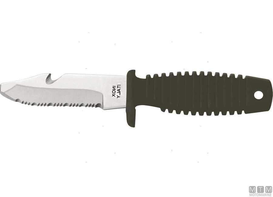 Nož shark 9/pt od inoxa crni – kompaktan ronilački nož bez vrha, s rezačem konopa, futrolom i trakama