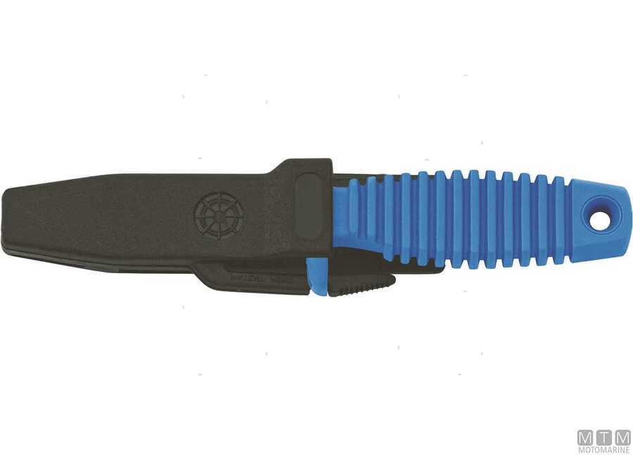 Kompaktan ronilački nož bez vrha, s rezačem konopa, futrolom i trakama.