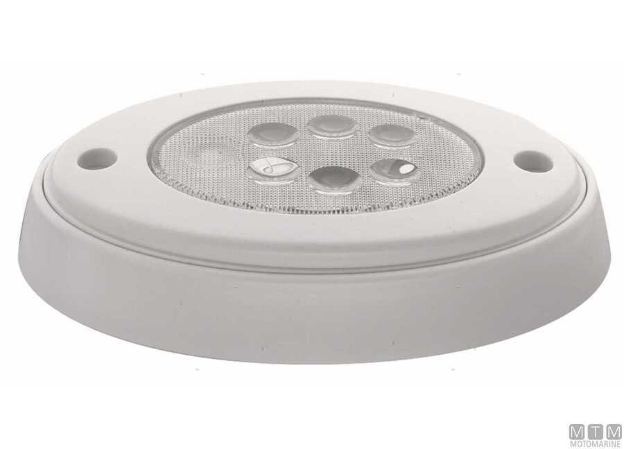 Plafonjera LED 12/24V s kućištem od Bijele Plastike. Smanjena potrošnja, dugi vijek trajanja. Toplo bijelo svjetlo 3000 K°.