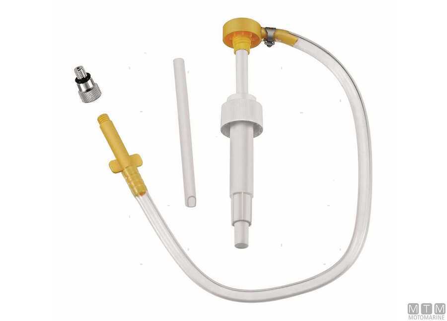 Ručna pumpa za izvlačenje ulja iz bilo koje Z-noge ili vanbrodskog motora, s navojnom spojnicom od 16 (3/8″). Pogodna za uporabu s bocama ulja od 946 ml, opremljena adapterom Yamaha.