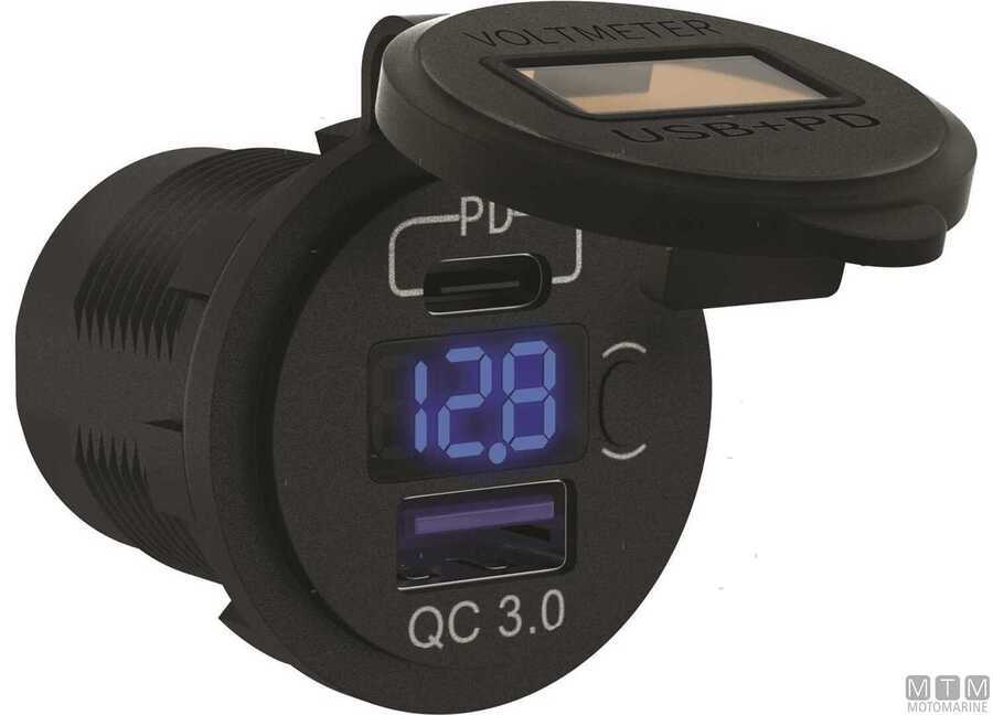 Višenamjenski panelni USB punjač sa ugrađenim digitalnim voltmetrom idealan je dodatak za automobile, motocikle, kamione, čamce, kampere i druge sisteme sa naponom 12–24 V. Kombinuje brzo punjenje i stalni nadzor napona u jednom kompaktnom uređaju.