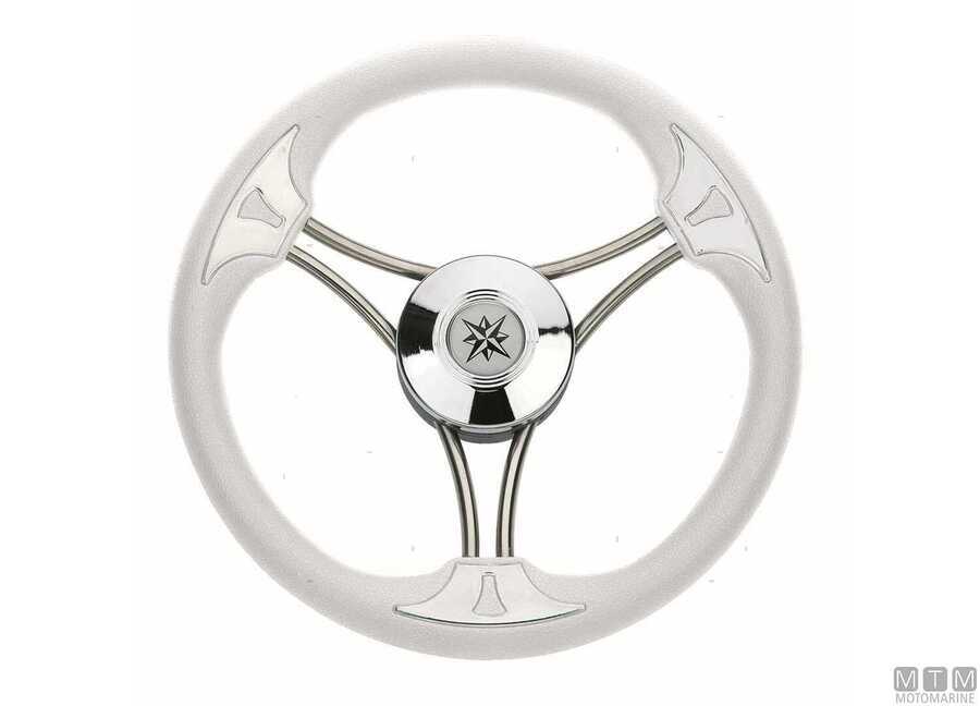 Volan Targa/Steel sa 3 kraka od inoxa i rukohvatom od poliuretana bijele boje promjera 350 mm